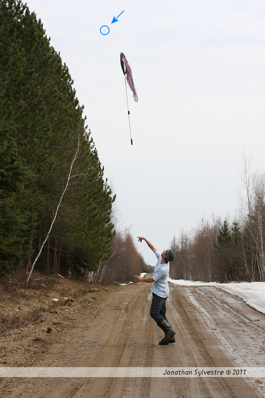 Il suffit alors de les suivre au vol pour les capturer plus loin, de la même manière qu'un papillon diurne.